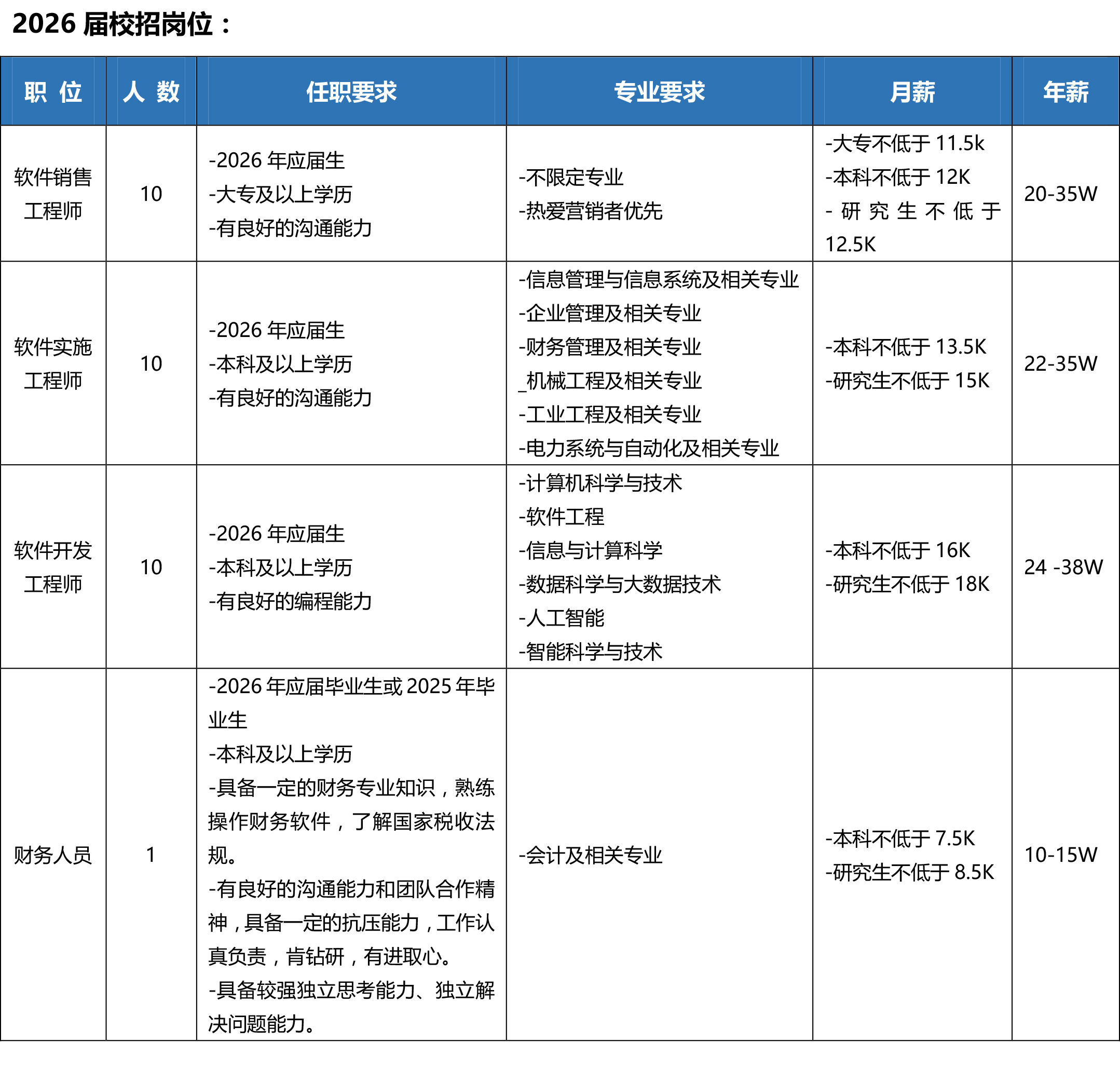 2026届校招职位: