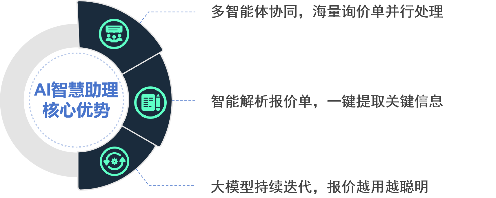 金思维AI智慧助理将深度赋能企业销售报价与运营决策等关键环节,通过三大核心优势助力企业实现效率与精准度的双重提升:AI智慧助理内置多智能体系统,可并行处理海量询价任务,大幅缩短从询价到报价的整体周期,实现报价效率倍增;AI智慧助理支持PDF、图片、Excel、手写等多种格式与非结构化内容的智能解析,精准提取关键信息并一键生成标准报价单,识别准确率超98%;此外,AI大模型还在使用过程中持续学习、迭代升级,在实际业务反馈中不断优化,越用越精准、越用越智能。