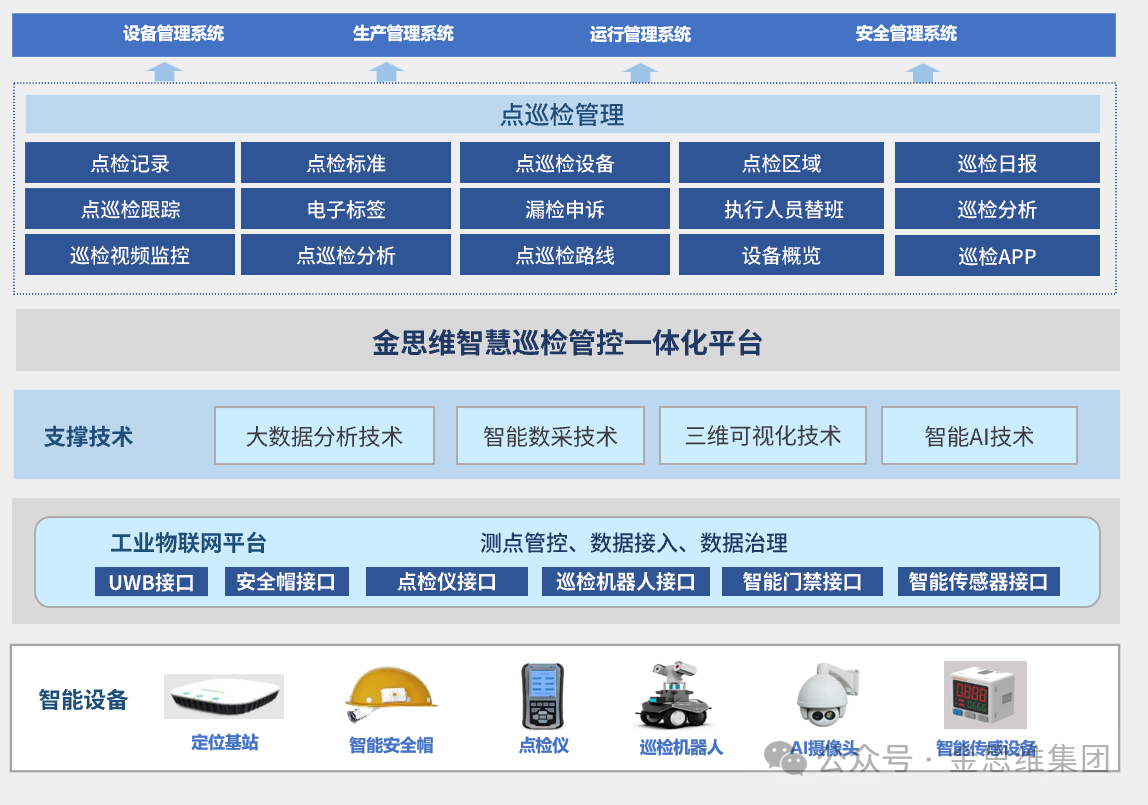 1> 金思维智慧巡检管理系统支持智能可视化安全帽、可穿戴巡检记录仪等个人智能穿戴设备,提升现场巡检人员信息获取的能力;